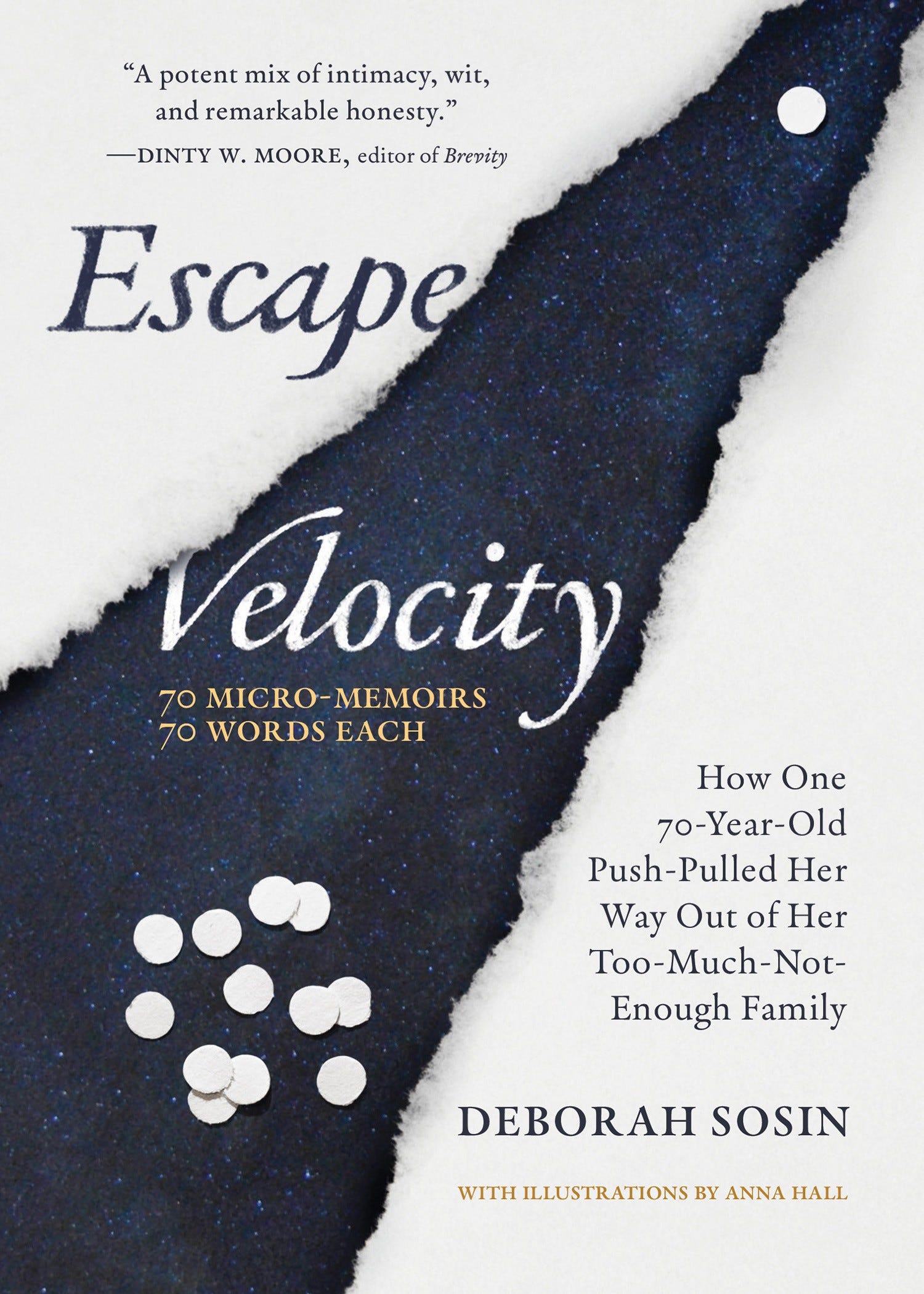 “Sosin’s beautifully precise seventy-word entries are expansive, deeply thoughtful, and often very funny explorations of the moments that shape a life. Generous, heartbreaking, and evocatively illustrated by Anna Hall, Escape Velocity reminds us of the transformative power we hold when we tell our own story.”